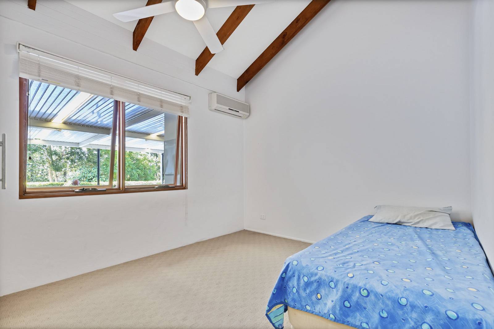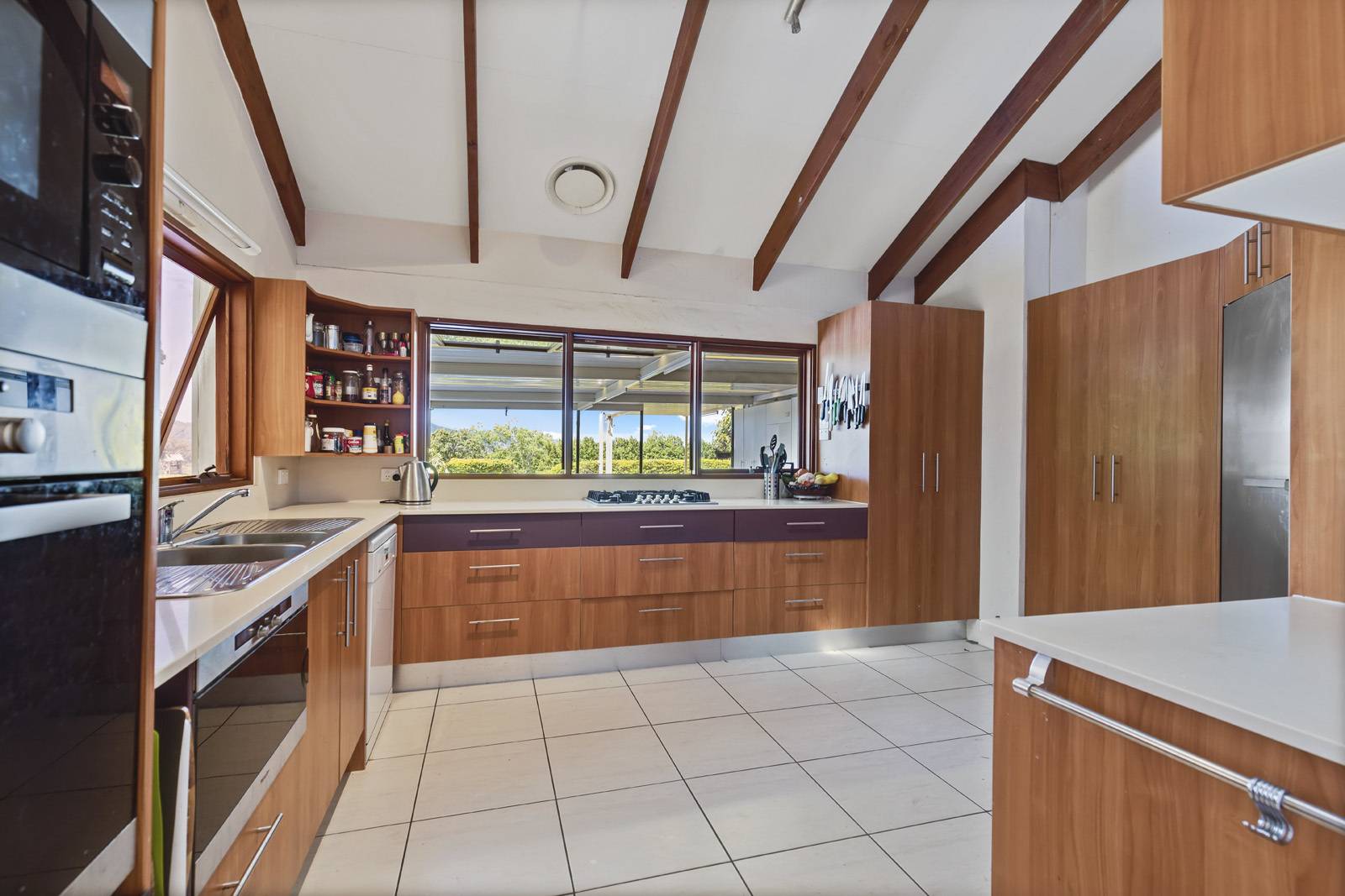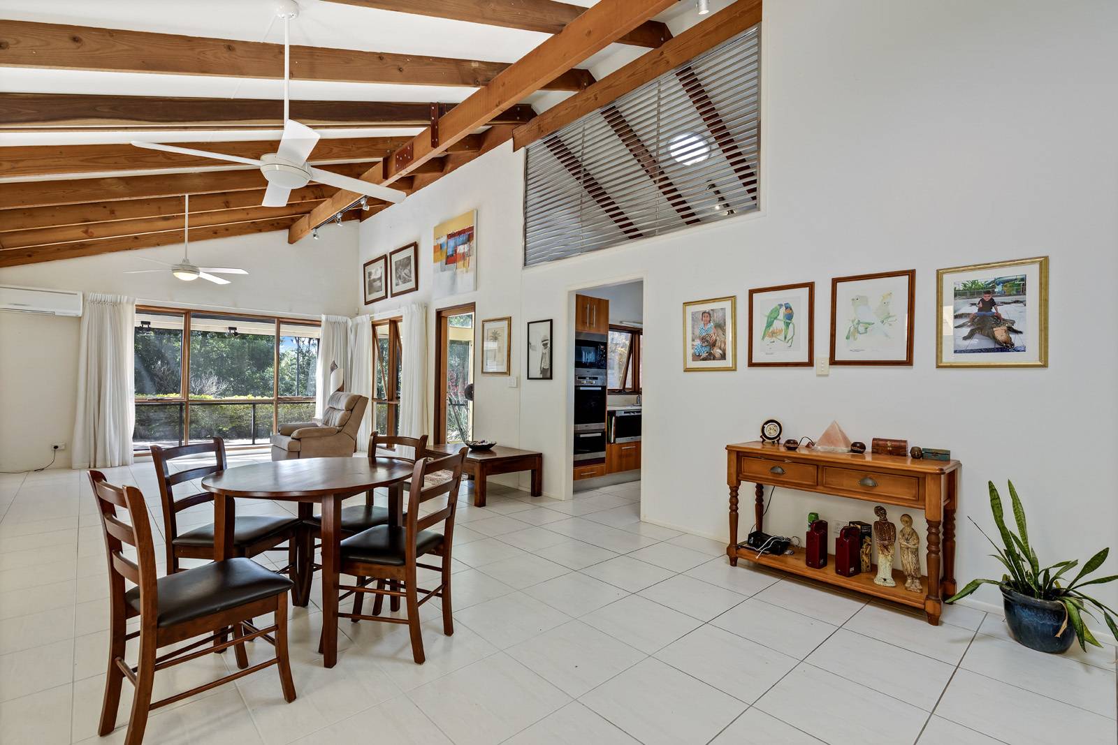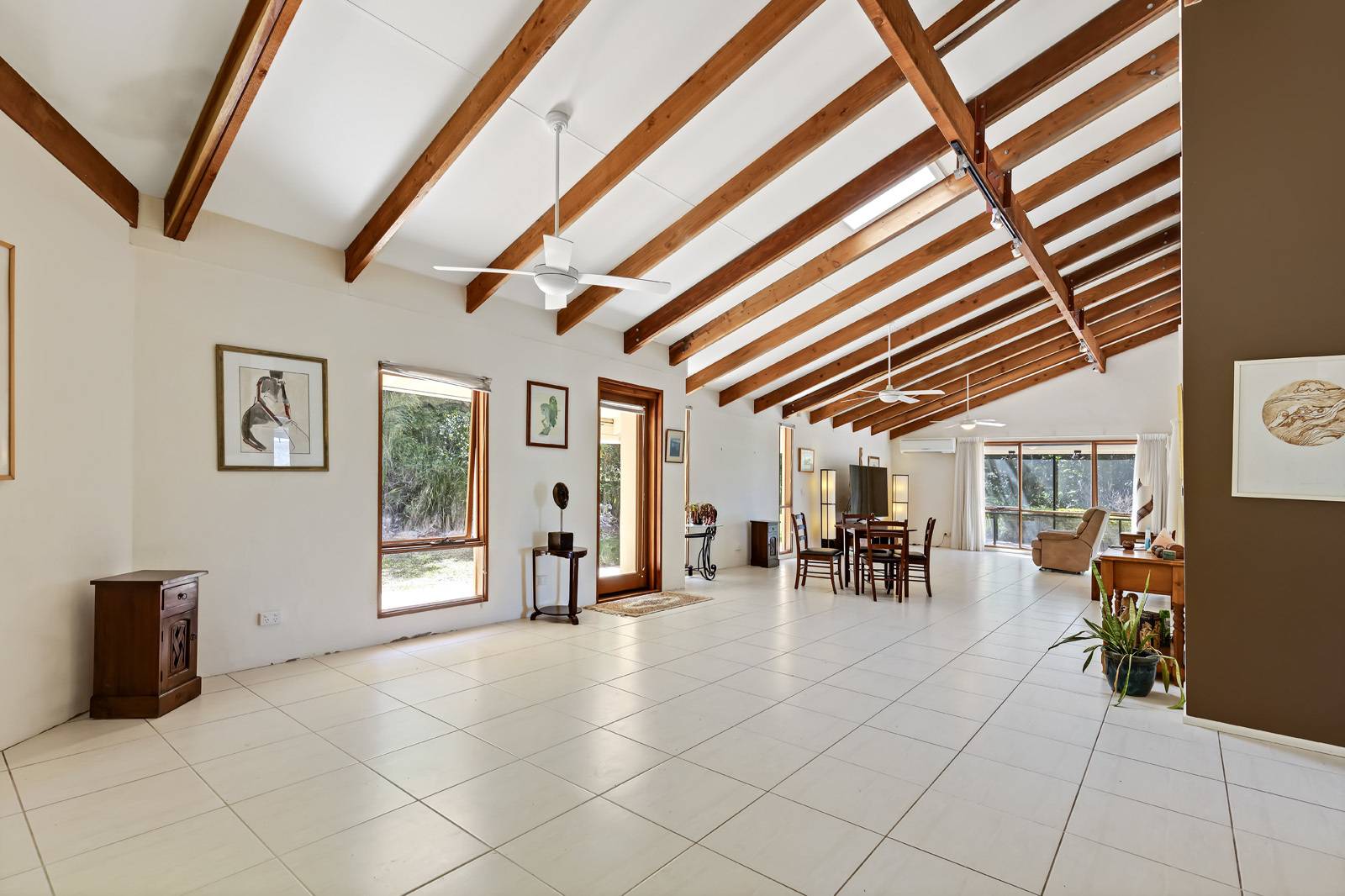 The main home has a real country feel with raked cielings in the living area, it's cathedral like in size and style. The kitchen is large has quality miele appliances, faces east to catch the morning sun and has a servery to the huge under cover outdoor entertaining area. Stone benchtops throughout. The main home has three bedrooms all with brand new air-conditioners, built-in cupboards and the main with ensuite. There is a separate open & airy sunroom/reading room as well as an in home office. Solar hot water & 18 solar panels will keep your utility costs down.