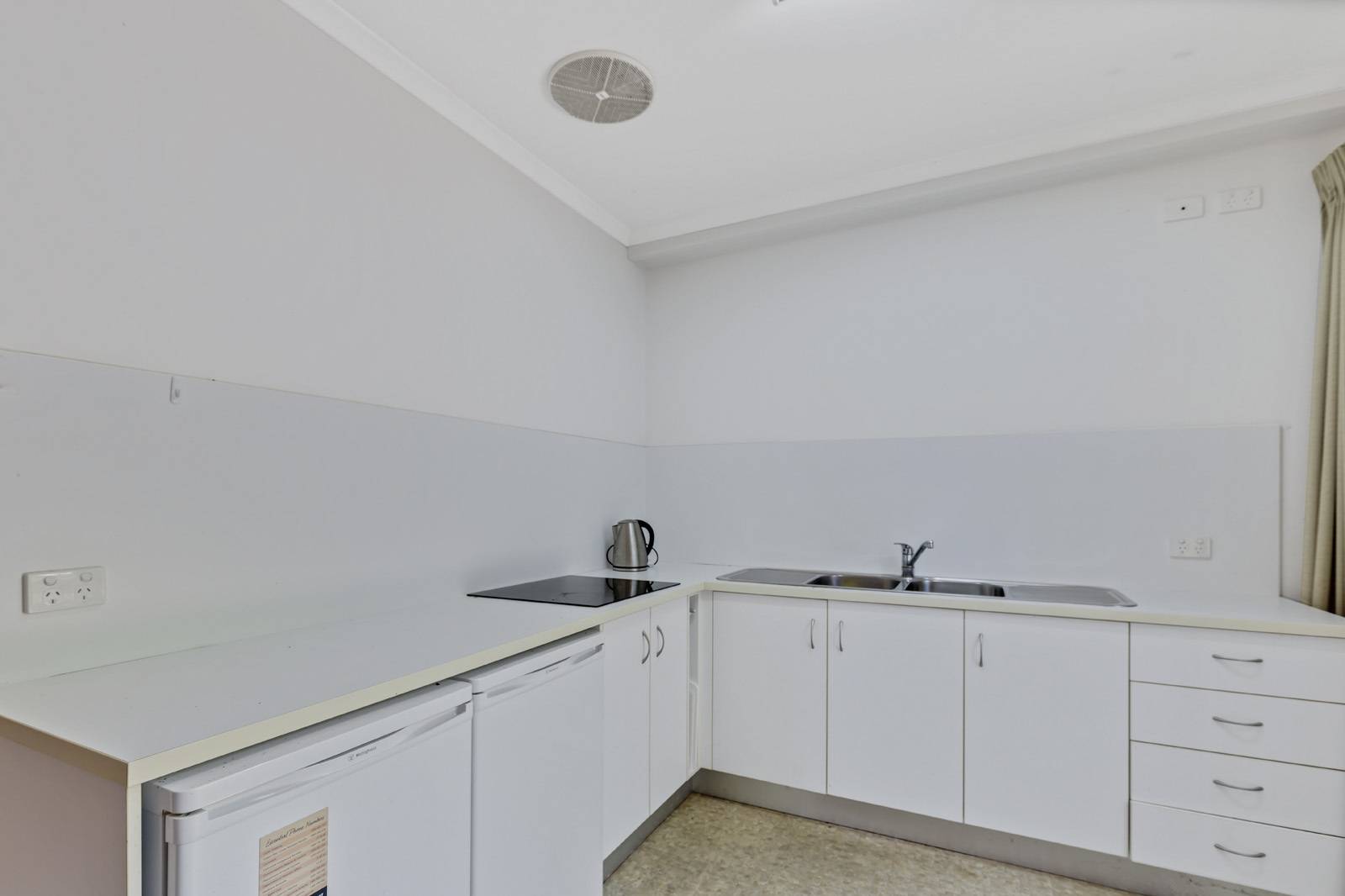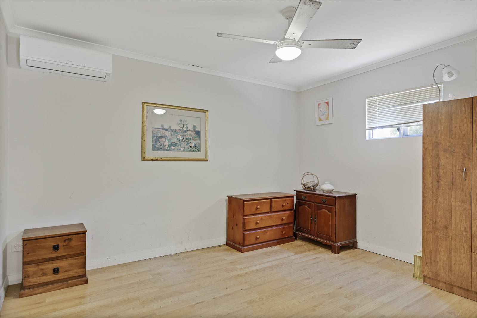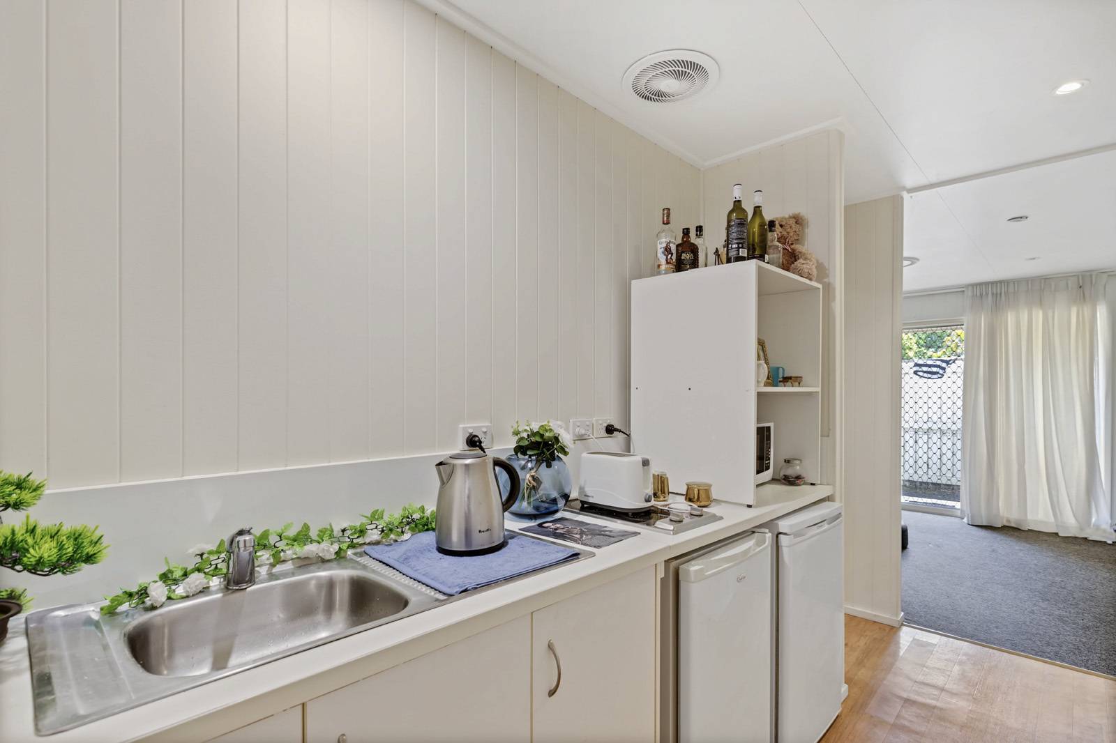 The two self contained granny flats are air-conditioned, have a combined bathroom & laundry separate  kitchenette and a single bedroom.  The five bay garage is near new has a 5 thousand gal poly tank and underground conduit (power) ready to be hooked up.