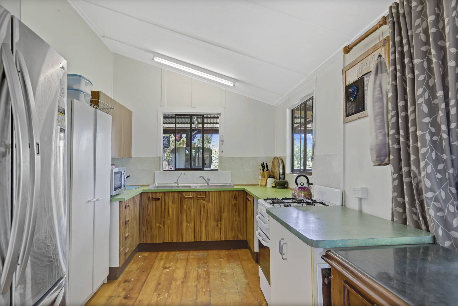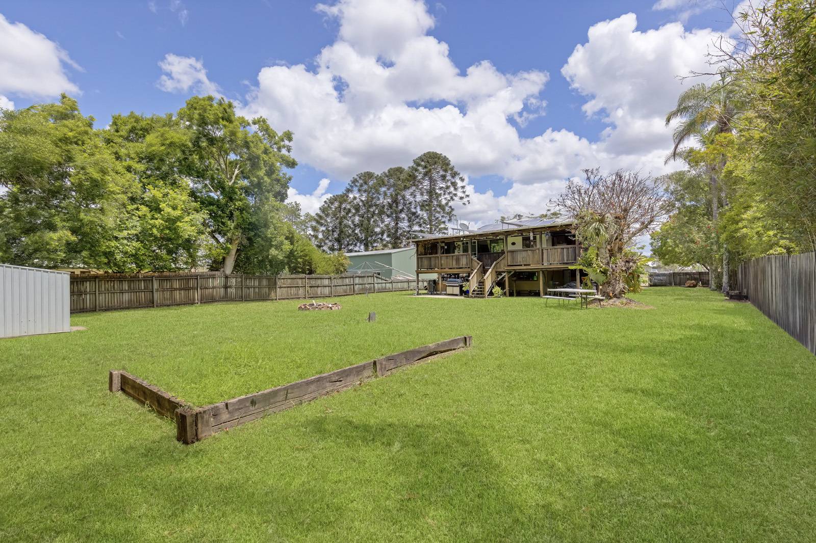 Massive 1325 sqm with development permit already in place to recon figurate one lot to two. The 1950's Queenslander sits at the front of the fully fenced flat block. The home has 3 bedrooms plus a sunroom or forth bedroom. Pine timber floors throughout with french doors and aluminum exterior cladding over the hardiplank.
