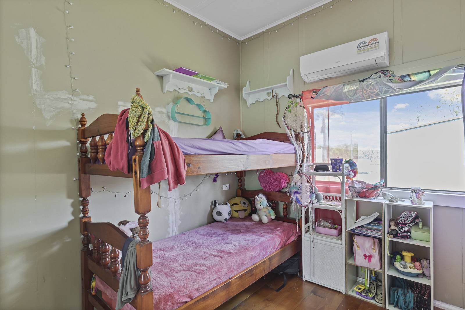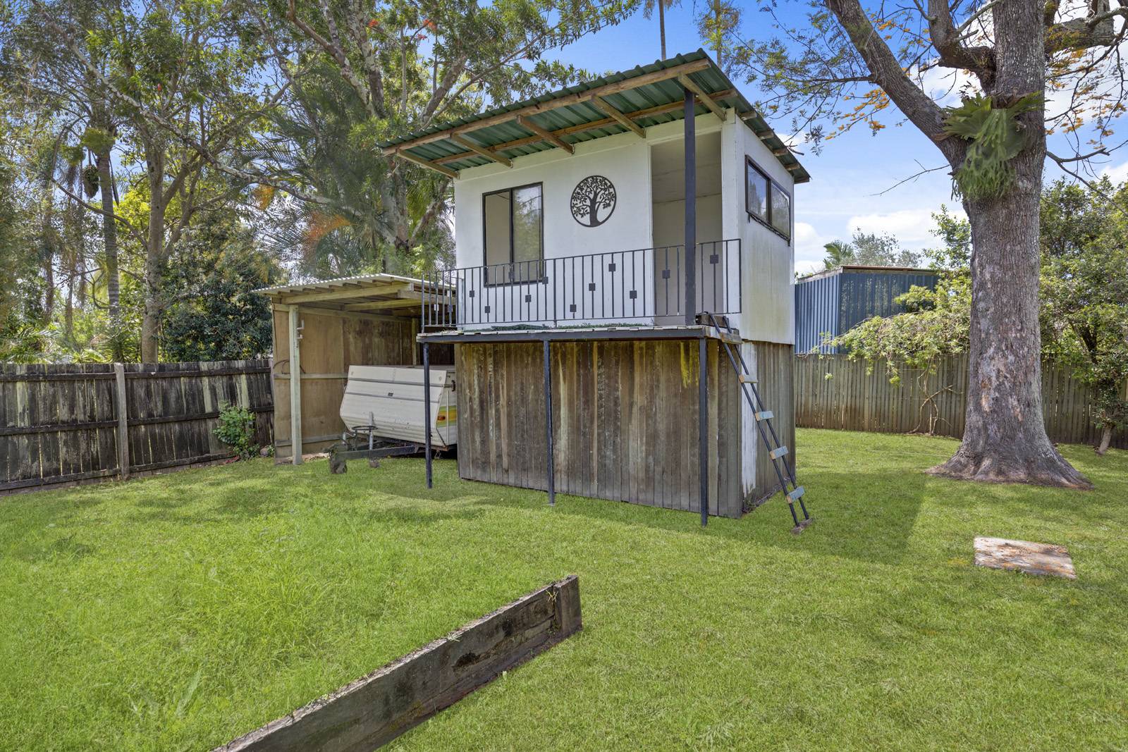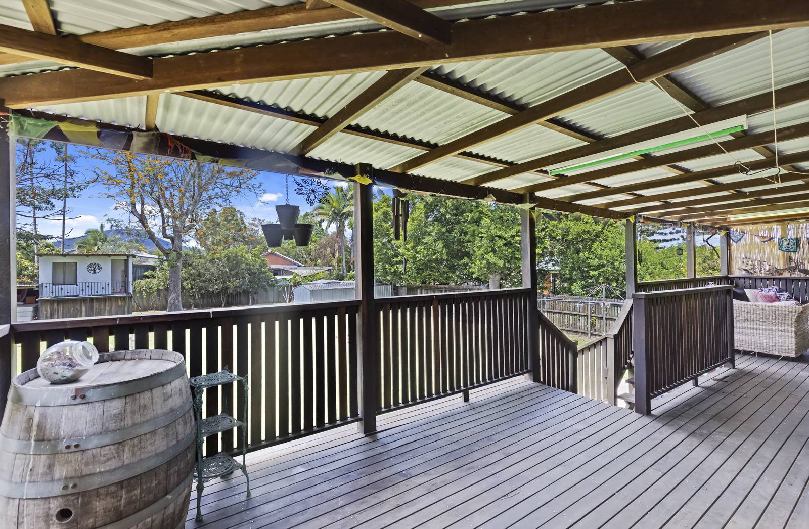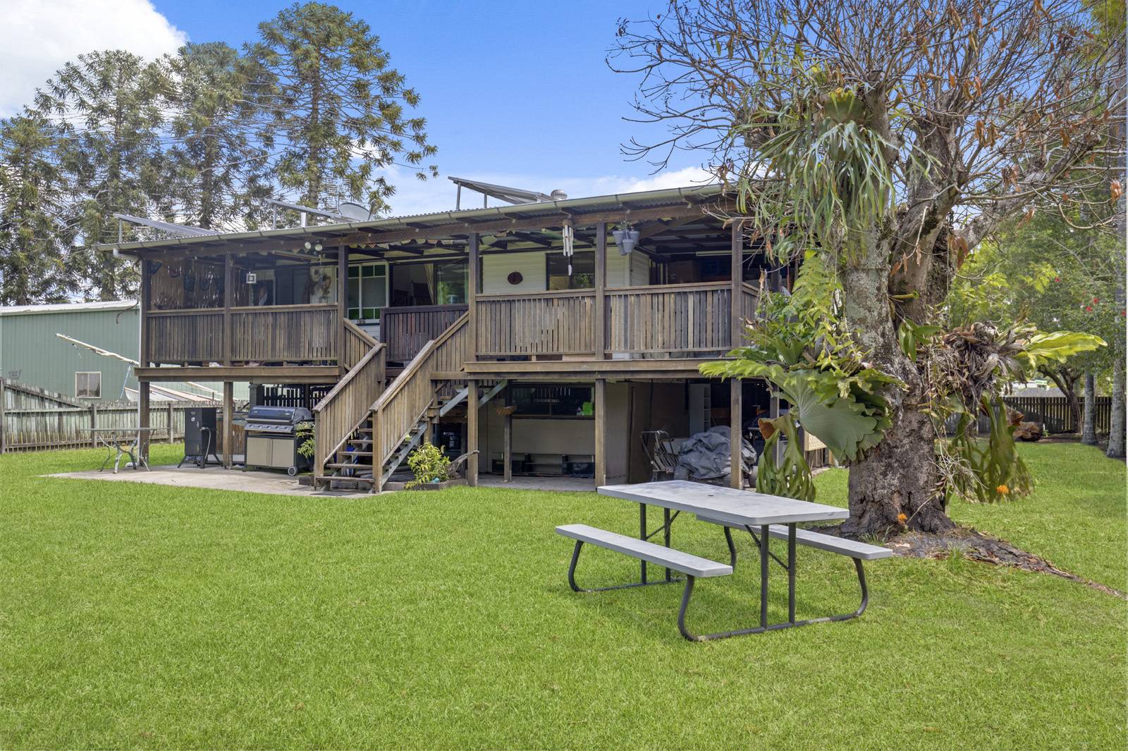 Separate lounge & dining , a huge timber under covered deck at the rear which is north & east facing, accessed from the kitchen and allows for easy entertaining. Both the kitchen and bathroom are in need of renovation but are still useable as is. Underneth the home is the laundry, storage area, man cave & accommodation for a couple of cars. A couple of garden sheds out the back with a fantastic cubby house for the kids. Solar panels have also been installed to keep your utility costs down.