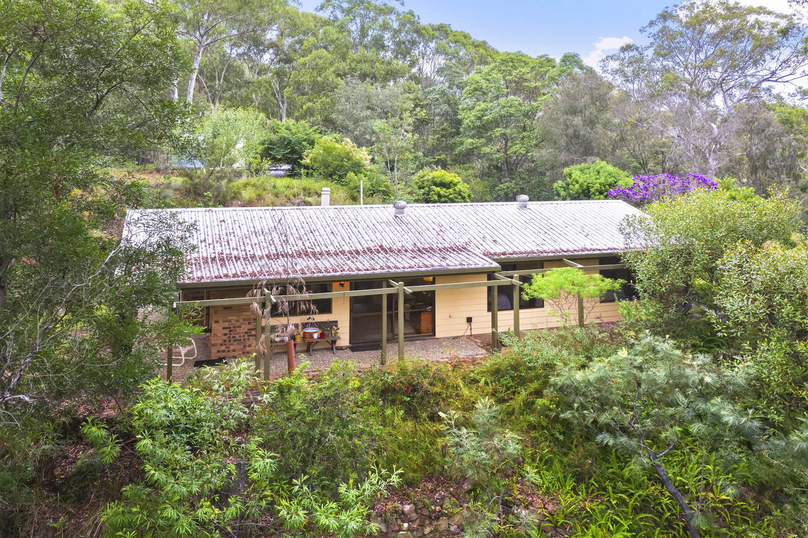 Sadly, it's time, after 33 years, that  "Coo-Nin-Coo" comes onto the market. "Coo-Nin-Coo" is an abbreviation  for  Coolum, Ninderry and Cooroy Mtns, which was the view from the home when first built 33 years ago. The approximate five acres of land is fully treed, very private, and backs onto State Forest. An easy all weather access with a combination of concrete, bitumen and concrete strips winds up to the house sitting right at the back of the property.  The home is a combination of hardy plank & brick with a steel frame & has been very well maintained. The three bedrooms all have built-in cupboards with a fan in the main. The kitchen has gas cooking, breakfast bar, plenty of cupboard space, and is still very workable.  The open plan lounge and dining have large sliding glass doors leading out onto undercover areas.  There is also a pot belly stove and an air-conditioner in the living area.  The bathroom has a shower and a toilet, and there is also another separate toilet.  Car accommodation is attached to the house with room for at least two cars.  There is also a shed with an enclosed lockable storage room attached.  This property has both town water and tanks, with a septic tank.