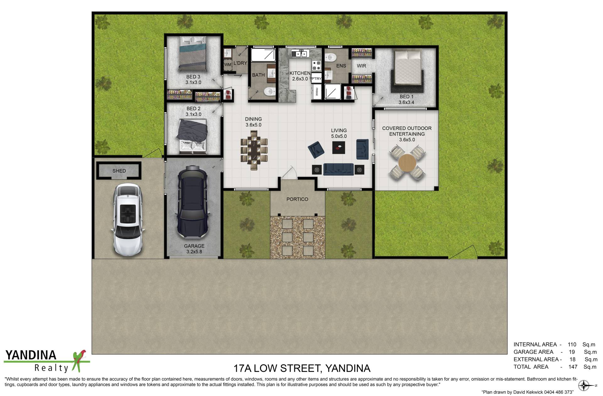 Centrally located with an easy 2 minute walk into Yandina town centre. This modern rendered 3 bedroom, 2 bathroom home is a breeze to maintain. Set on an easy care 478m2 with a fully fenced yard. Two car accommodation, 1 single remote garage with epoxy floor and internal & external access and 1 outdoor car park beside the house. The home has easy care tiles throughout with carpet in the bedrooms. All bedrooms have built-in cupboards & fans with the master having air-con & a walk-in robe & en-suite.  The open-plan living is in the heart of the home, air-conditioned and opens up onto the north east under covered exposed aggregate outdoor entertainment area.  The kitchen is galley style and very stylish with it's ceramic cooktop, Caesar stone bench-tops, dishwasher & breakfast bar.  The fully fenced yard has a pedestrian gate at the front and back of the house.  Slim line tank for drinking or the laundry.