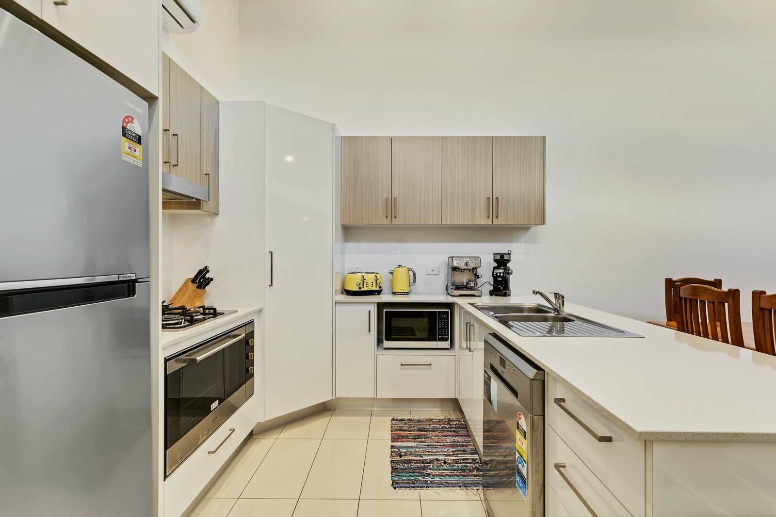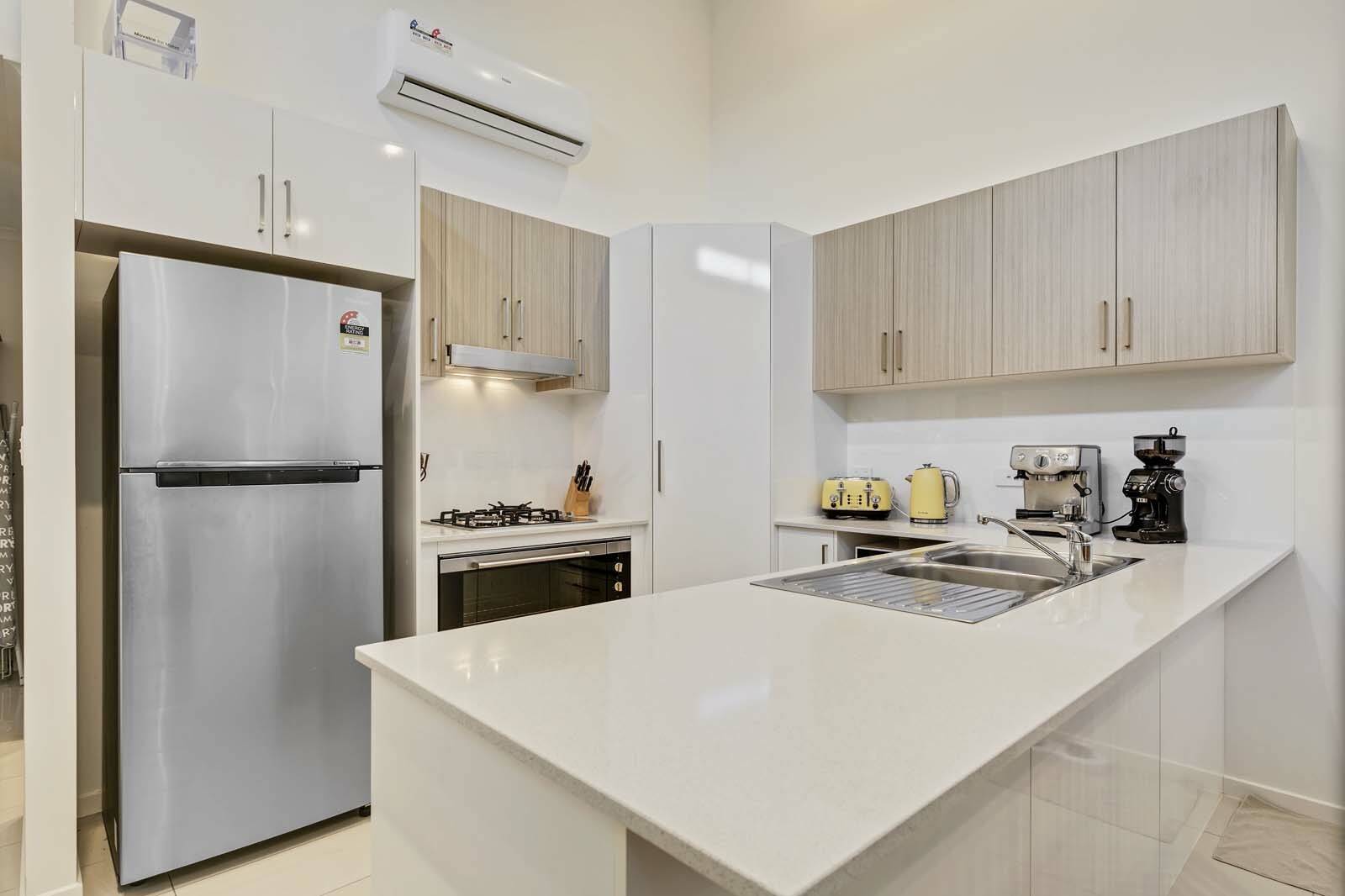 Caesar stone bench tops throughout, Gas cooktop, Electric oven, Gas hot water, Dishwasher