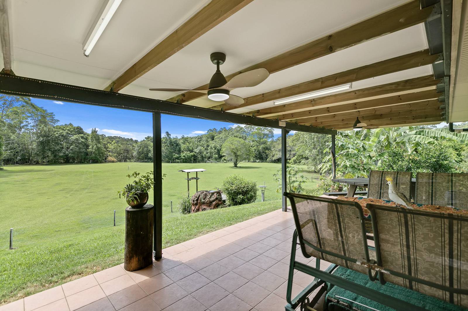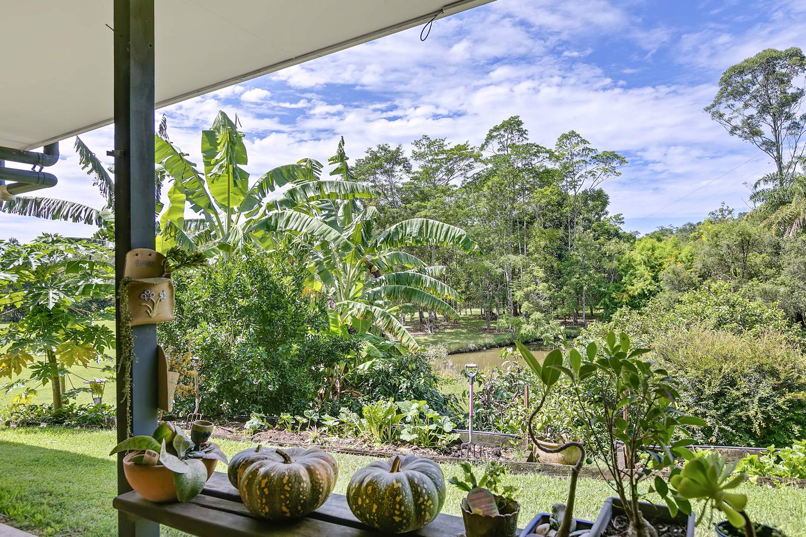 There is an array of native and rainforest wildlife, meat & grain eating birds to keep you entertained, pristine dam & an abundance of fruit trees including mango, banana, custard apple, orange, lime, avocado and raised vegetable & herb gardens to satisfy your want to live a sustainable lifestyle.