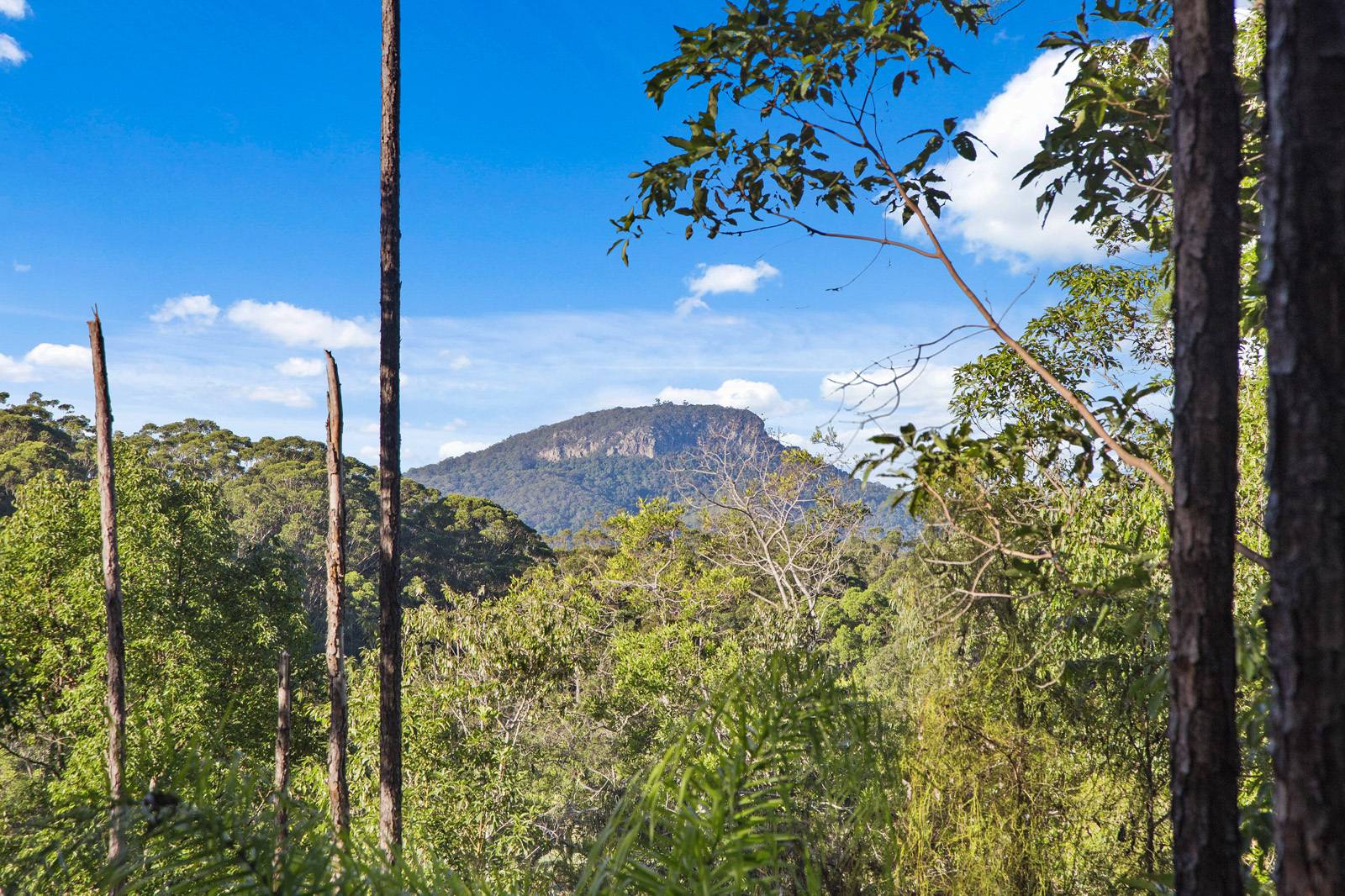 Small regrowth at the front of the property,  would be easy to doze a driveway half way up the block to take in the fantastic views of Mt Ninderry.  The rest of the acreage is Eucalypt forest with an abundance of grass trees and natural bush. The house sites are very private with not a house in site and views of Mt Ninderry never to be built out. Wappa Falls Rd is very sought after being one of the only rural roads out of town with mains water.  A green environmental zone at the front left of the property and backing onto Mapleton National Park secures your peace & privacy.  Acreage properties of this size are very uncommon so close to town with town facilities on hand.