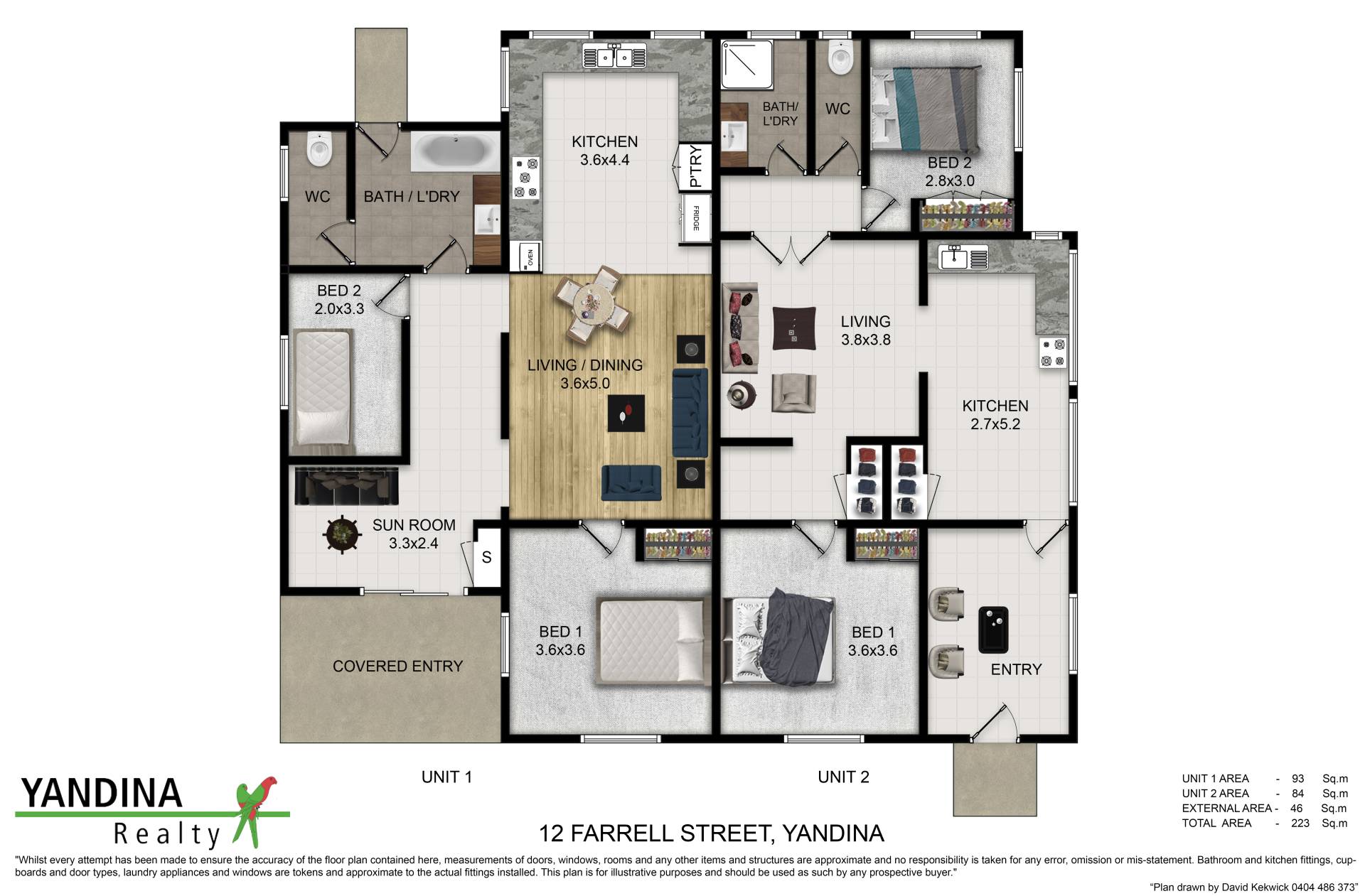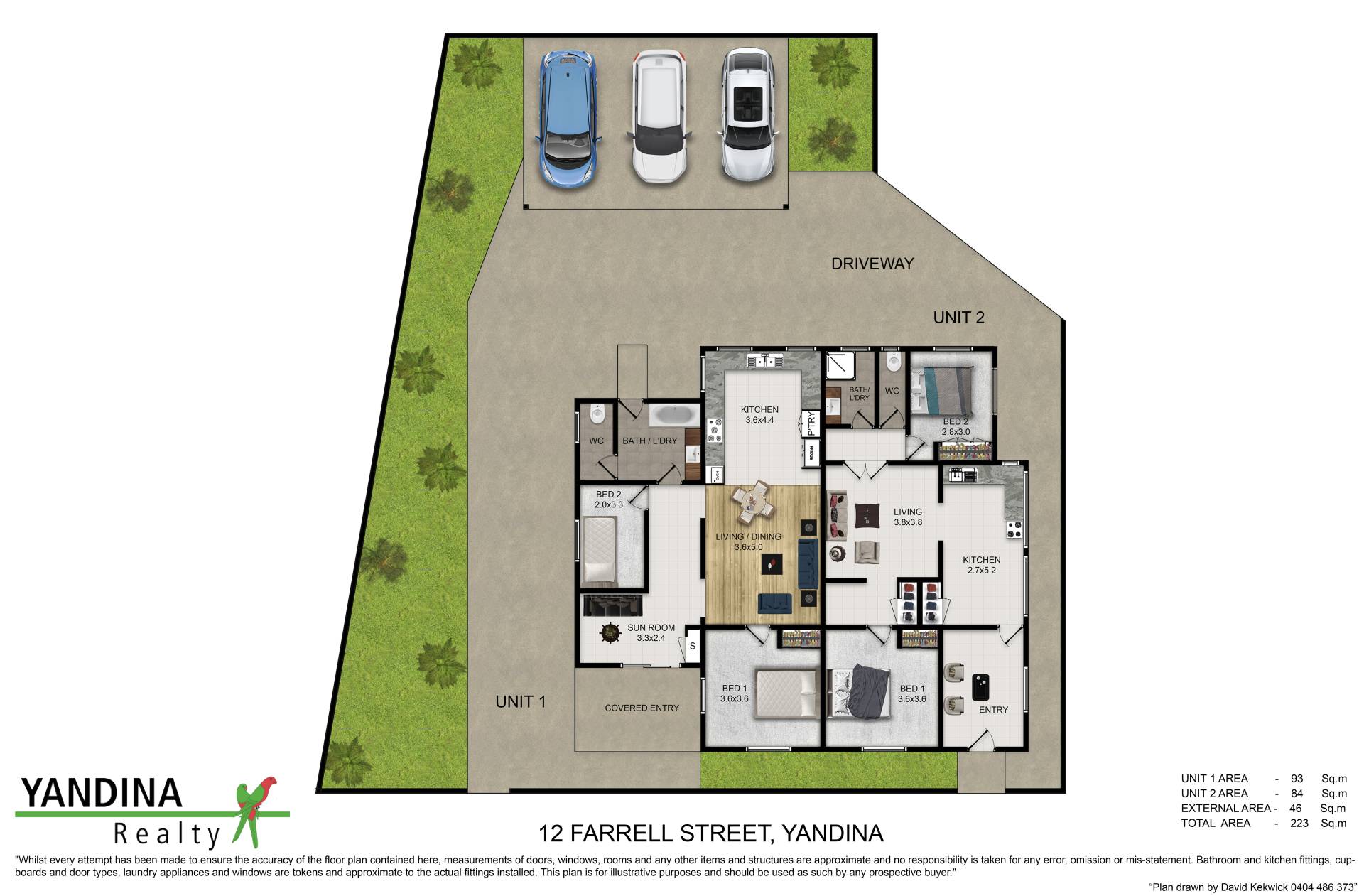 Unit 1 Currently tenanted for $460 per week- Unit 1 features 2 bedrooms the main with built-ins, fans & air-con. Combination of polished timber floors and tiles throughout. Retro kitchen with electric cook-top and wall oven dated but in good condition.  Bathroom/Laundry combined with a separate toilet. Combined kitchen, living & dining with separate sunroom with north/east facing under covered verandah. Fenced yard with side access, enough room for a caravan & boat.