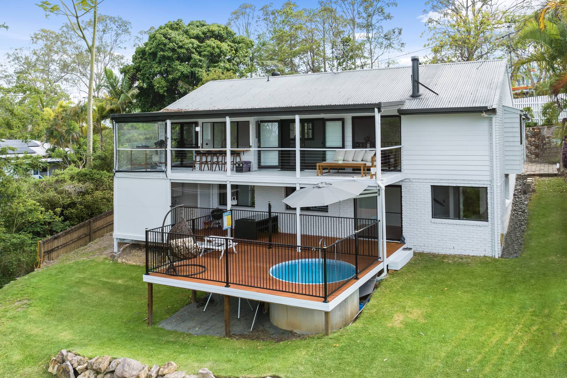 SOLD BY KATE HENDERSON-BURTON. Built in the mid 80's and tastefully renovated over the last couple of years this home has all the creature comforts of today's modern society. The home is a mix of brick & weather board with hardwood frame, two story with internal access downstairs. Back verandahs on both levels with views & breezes over Yandina township and a plunge pool integrated into the verandah downstairs.