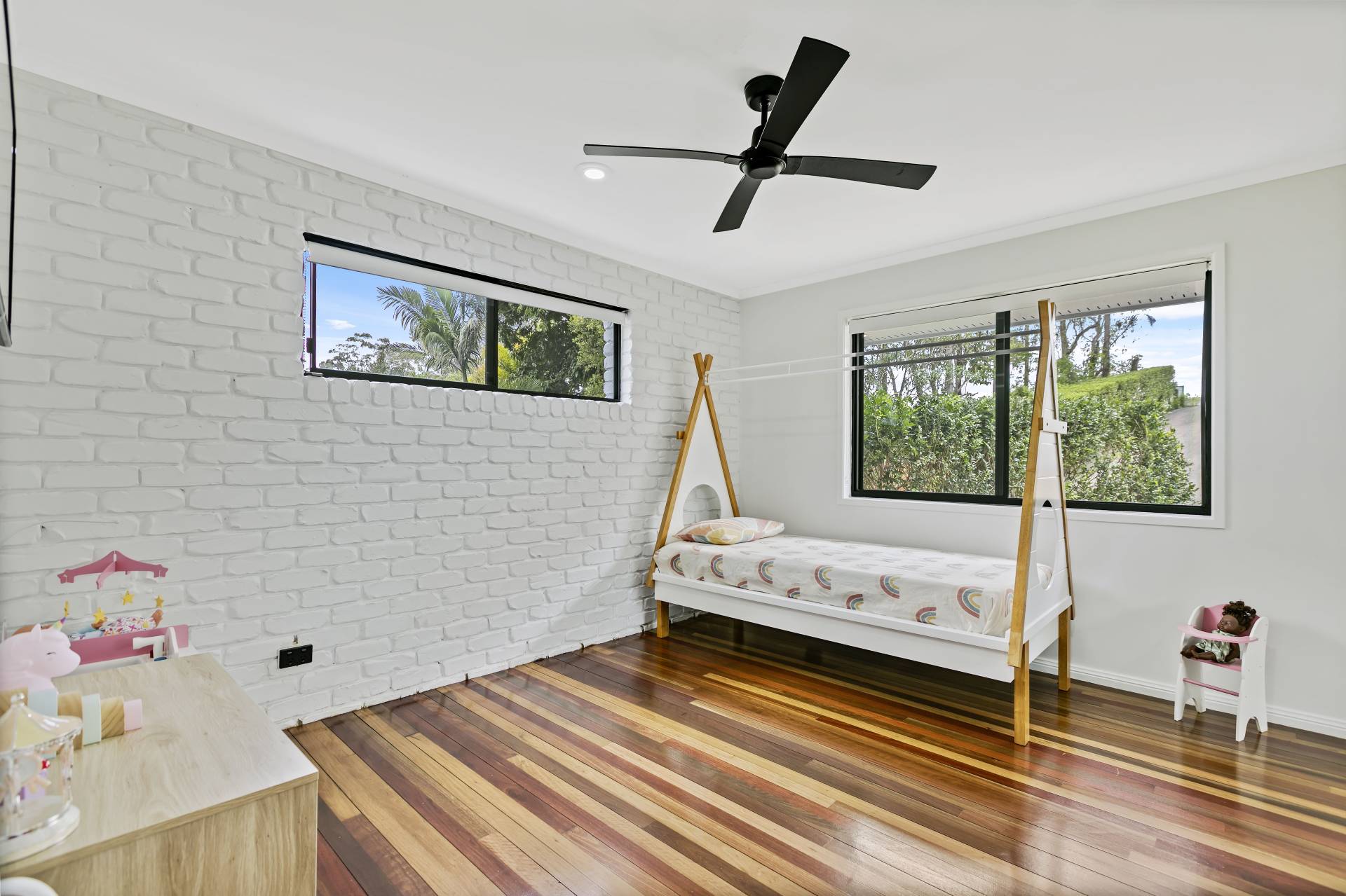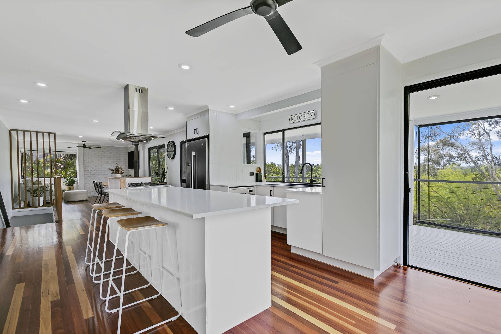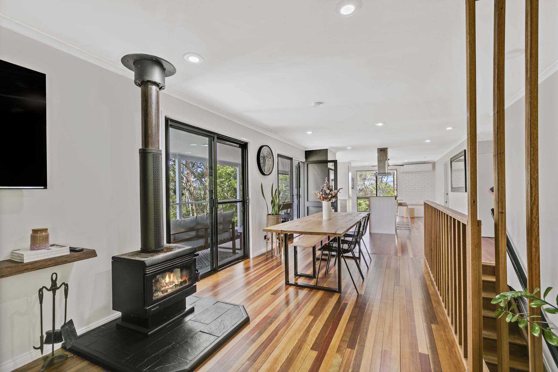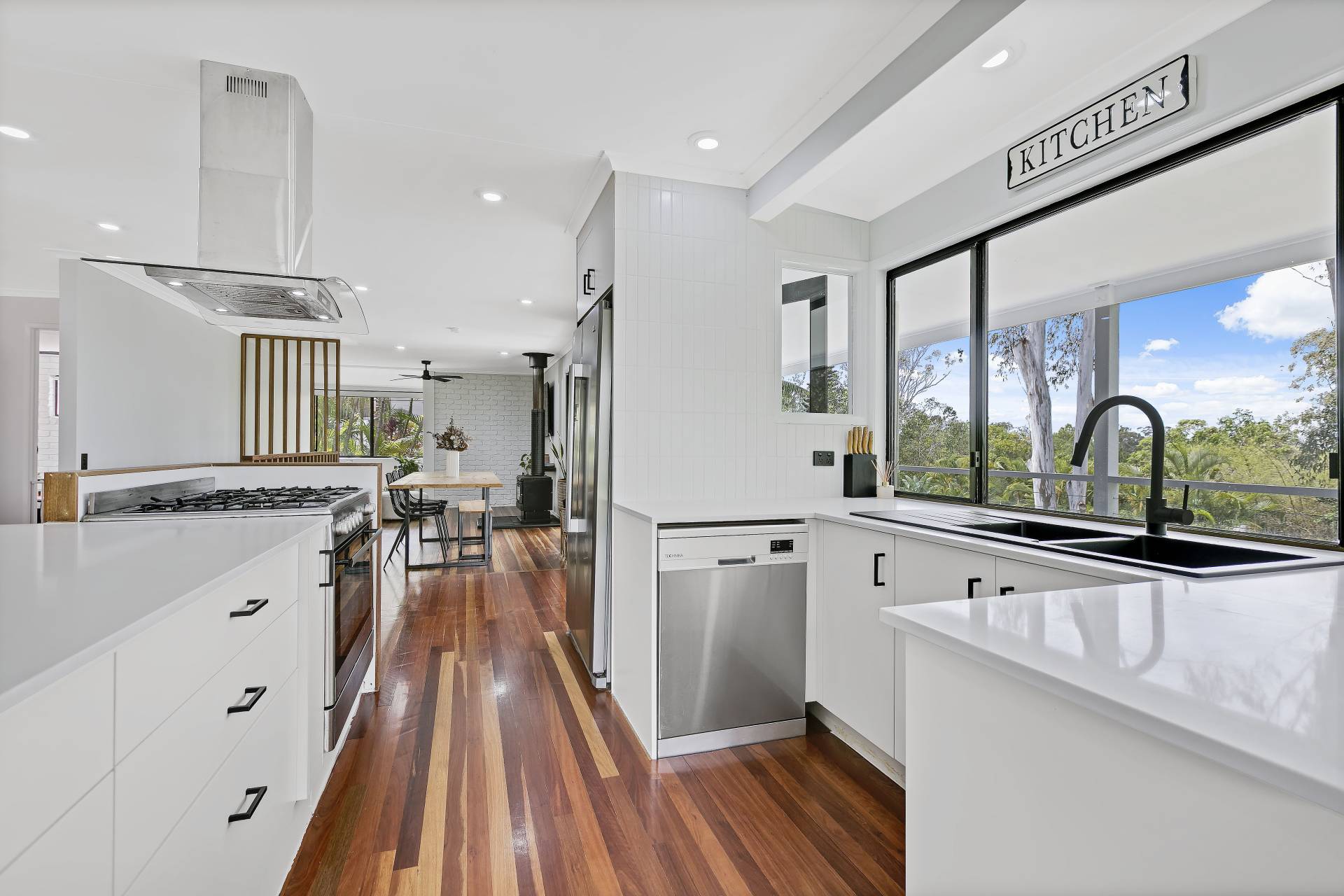 The home has three large bedrooms. Two upstairs and the parents retreat downstairs with ensuite and second living area. Main bathroom upstairs with separate toilet. Newly appointed laundry downstairs. Open-plan living upstairs with a combined kitchen, dinning & lounge with air-con for the warmer months and a fire place for the cooler months. Newly installed polished timber floors throughout upstairs with tiles in the wet areas. The kitchen has a 900mm gas-cook-top, electric oven, dishwasher, breakfast bar, stone bench tops & servery out to the back deck. Huge enclosed man cave under the home great for storage.