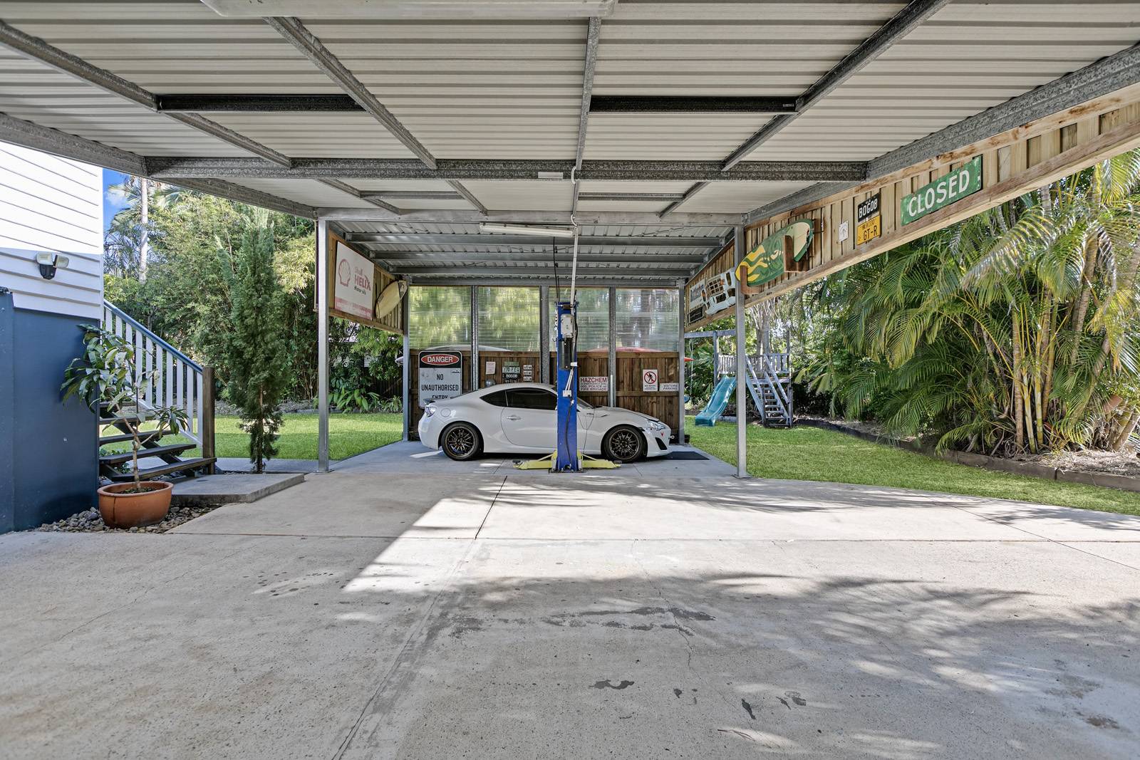 Parking for 1 under the house + triple high carport + double lock-up tandem shed