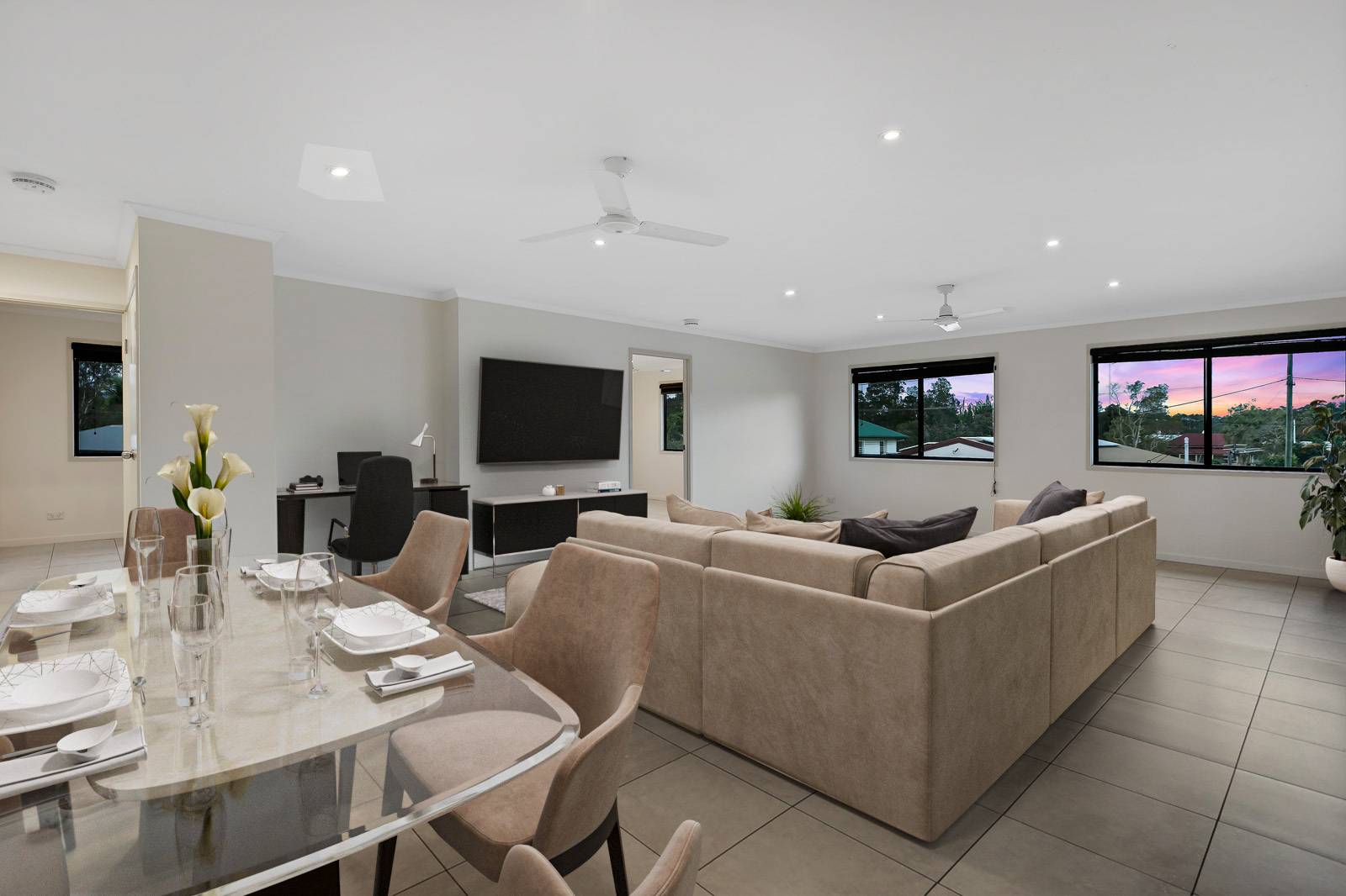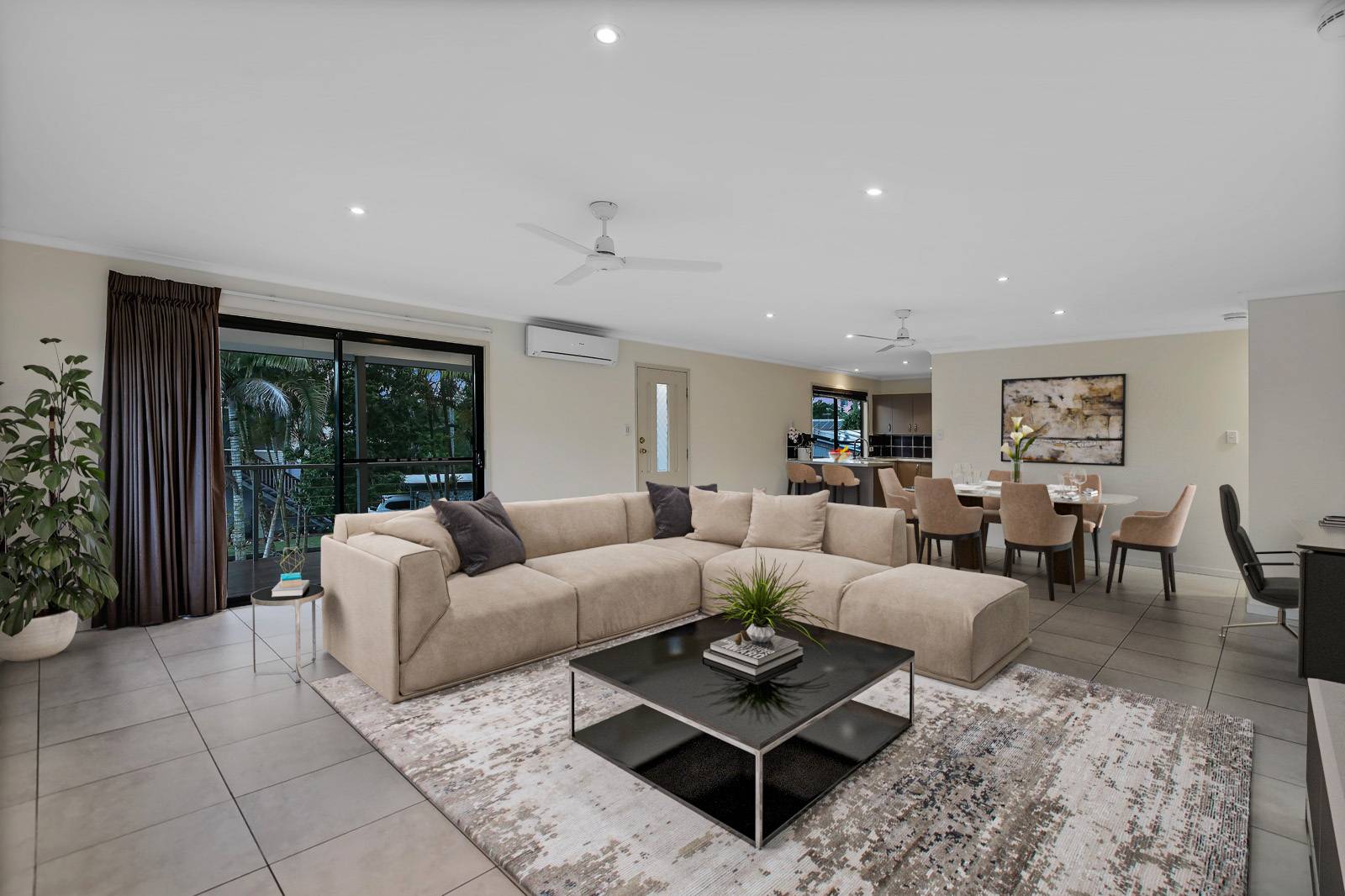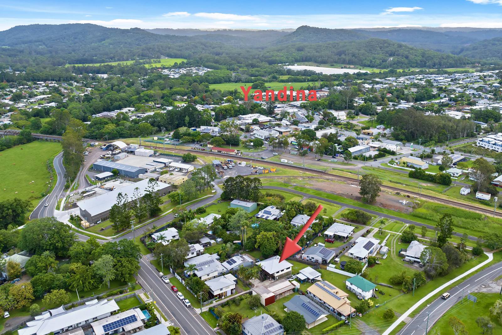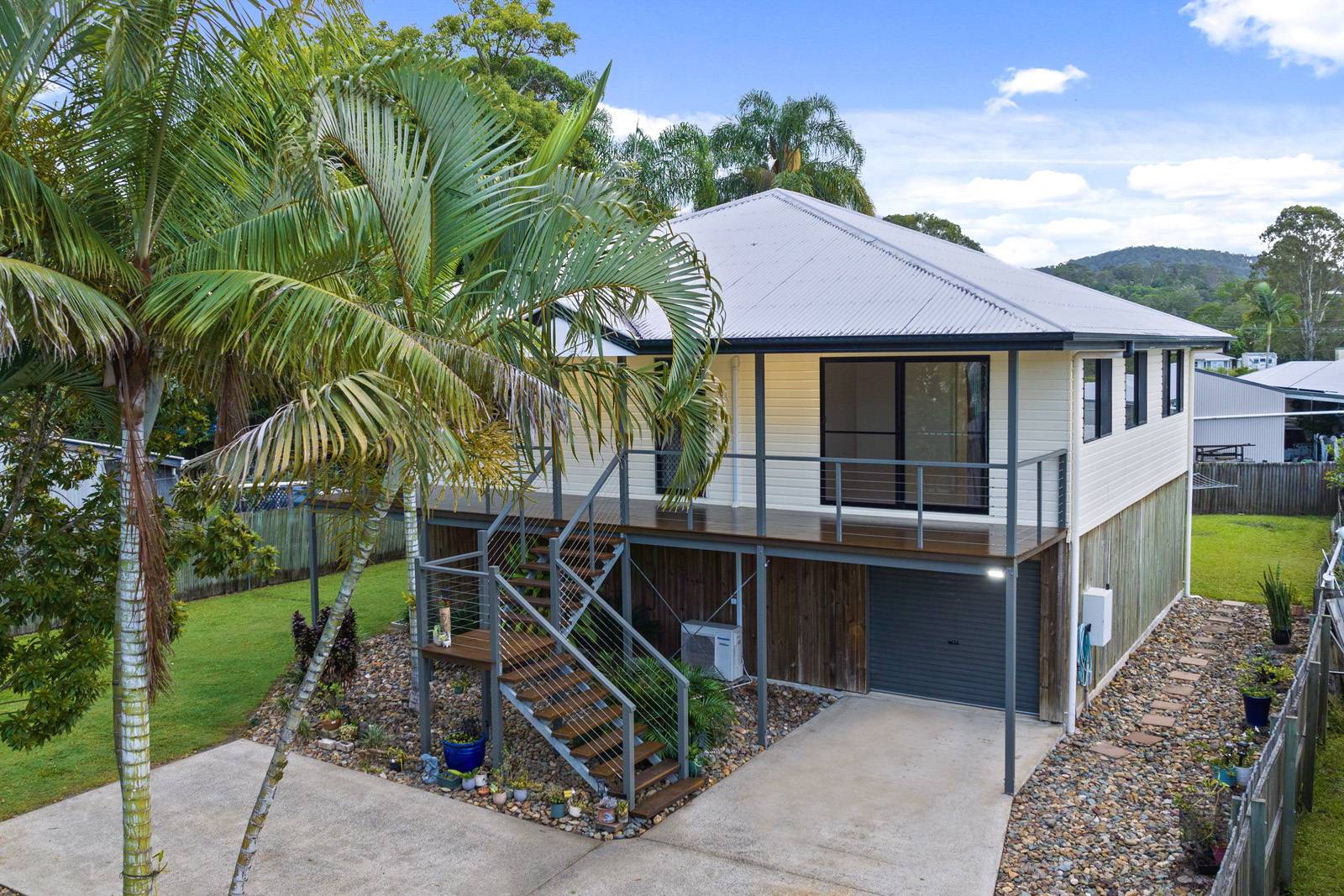 Set back from the road with an easy access concrete driveway. This fully fenced & flat 721m2 block with high set home is an easy walk to Yandina's CBD, train station & bus stops. The high set 3 bedroom, 2 bathroom home has been freshly painted has easy care tiles throughout, new fans & built-in cupboards. The main with walk-in robe & ensuite. The air-conditioned open-plan kitchen, dining & lounge opens up onto the north/east facing full length verandah which has great views to Mt Ninderry.