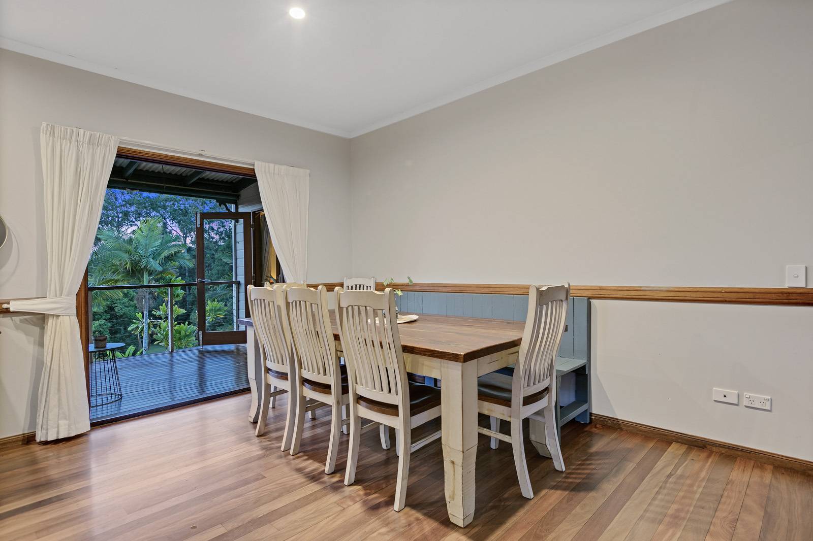 Upstairs, light filled interior are complemented with 2.7 metre ceilings, polished timber floors and a cosy fire place. The country style kitchen offers a 900mm Westinghouse cook-top & oven, double drawer Fisher Paykel dishwasher, pantry & fridge nook. The open-plan kitchen & dining flow onto the 3 metre wide verandahs over looking the land and salt water swimming pool. A great addition to the verandah is a gazebo perfect for entertaining. Wrap around verandahs on three sides offer additional entertaining areas. The main bedroom has direct access to the verandah, while bedroom two & three are also located upstairs. The main bathroom has spa bath, separate shower & floor to ceiling stone tiles.
